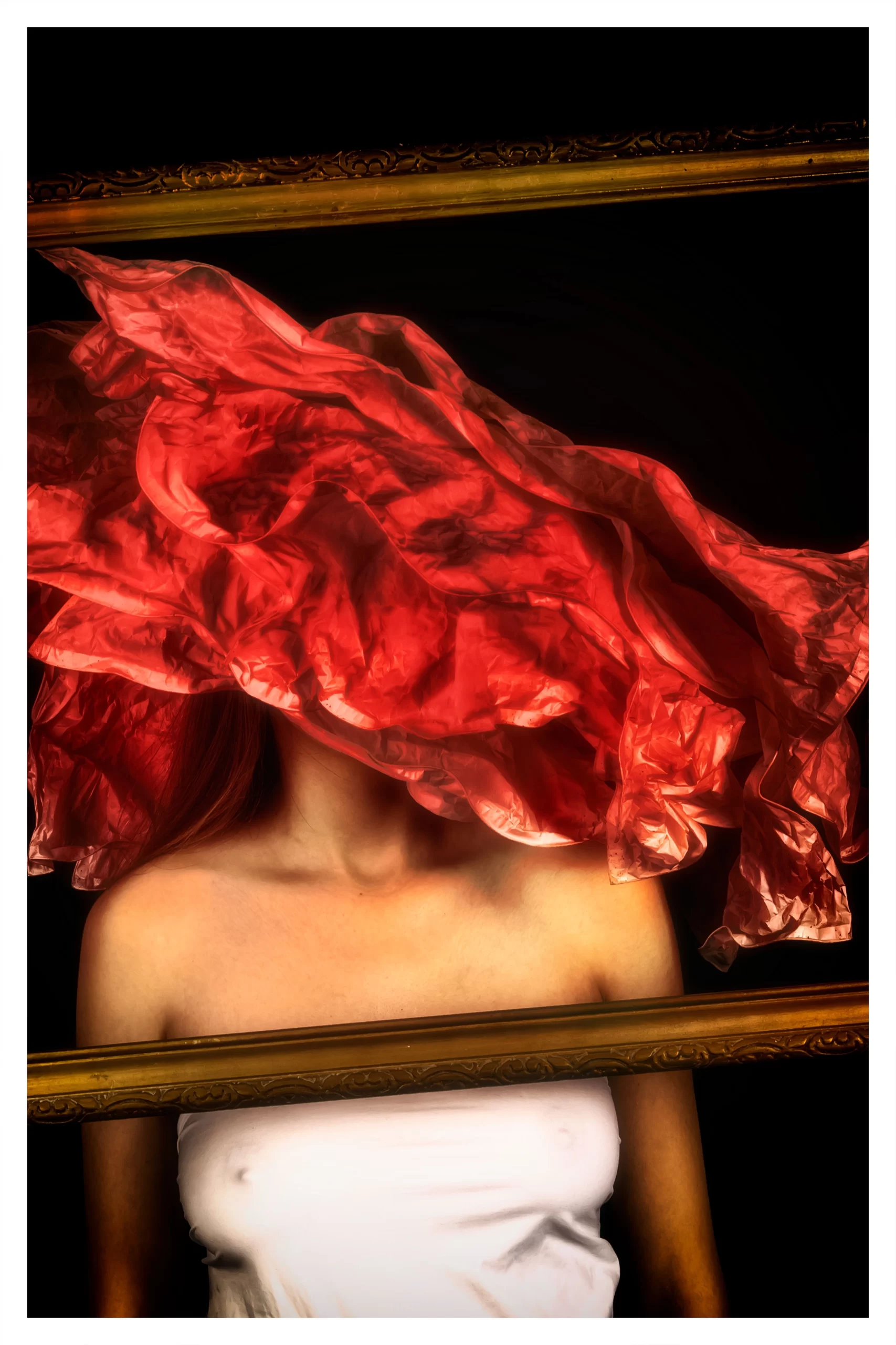 Vă prezentam tabloul Ascunderea sub rosu realizat de fotograful Gelu Stănculescu alături de modelul Maria Scîrlet.